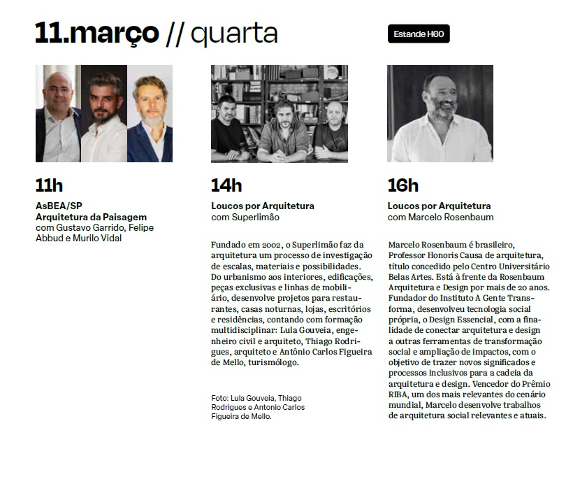 The big names in Brazilian architecture come together to discuss innovation, sustainability, technology, new ways of living, and the social impact of architecture. Program open to the public.