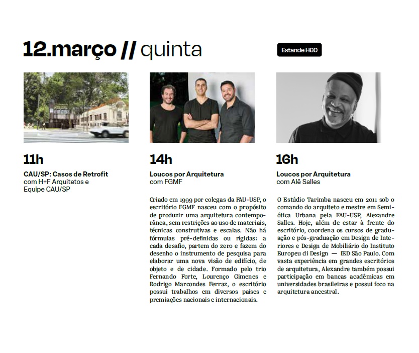Promotion: Expo Revestir, PROJETO Magazine, AsBEA, CAU/BR, CAU/SP, and IAB. Support: Artefacto. Sponsorship: ITA - Italian Trade Agency.