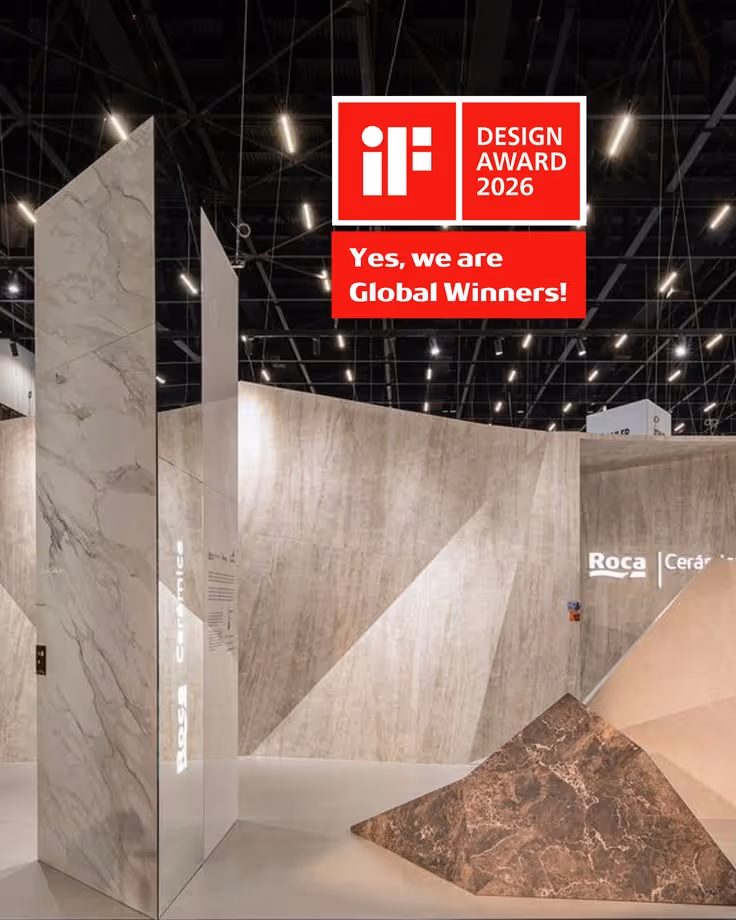 The Roca stand at Expo Revestir 2025 was awarded the iF DESIGN AWARD 2026 in the Trade Fair Stand category, one of the most important and recognized design awards in the world. The projeto the concept of exhibition space and becomes an immersive architectural installation where material, scale, and narrative merge into a unique experience.