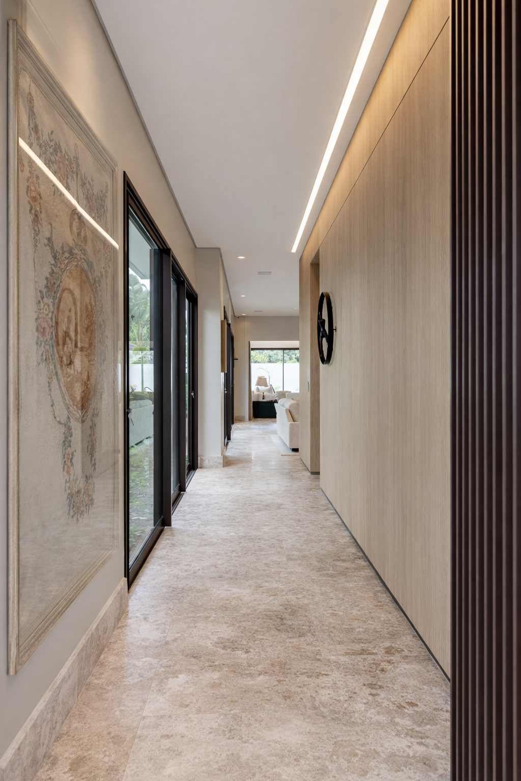 Slatted: With a linear and aligned format, it promotes rhythm and visual continuity for large surfaces in contemporary architecture.