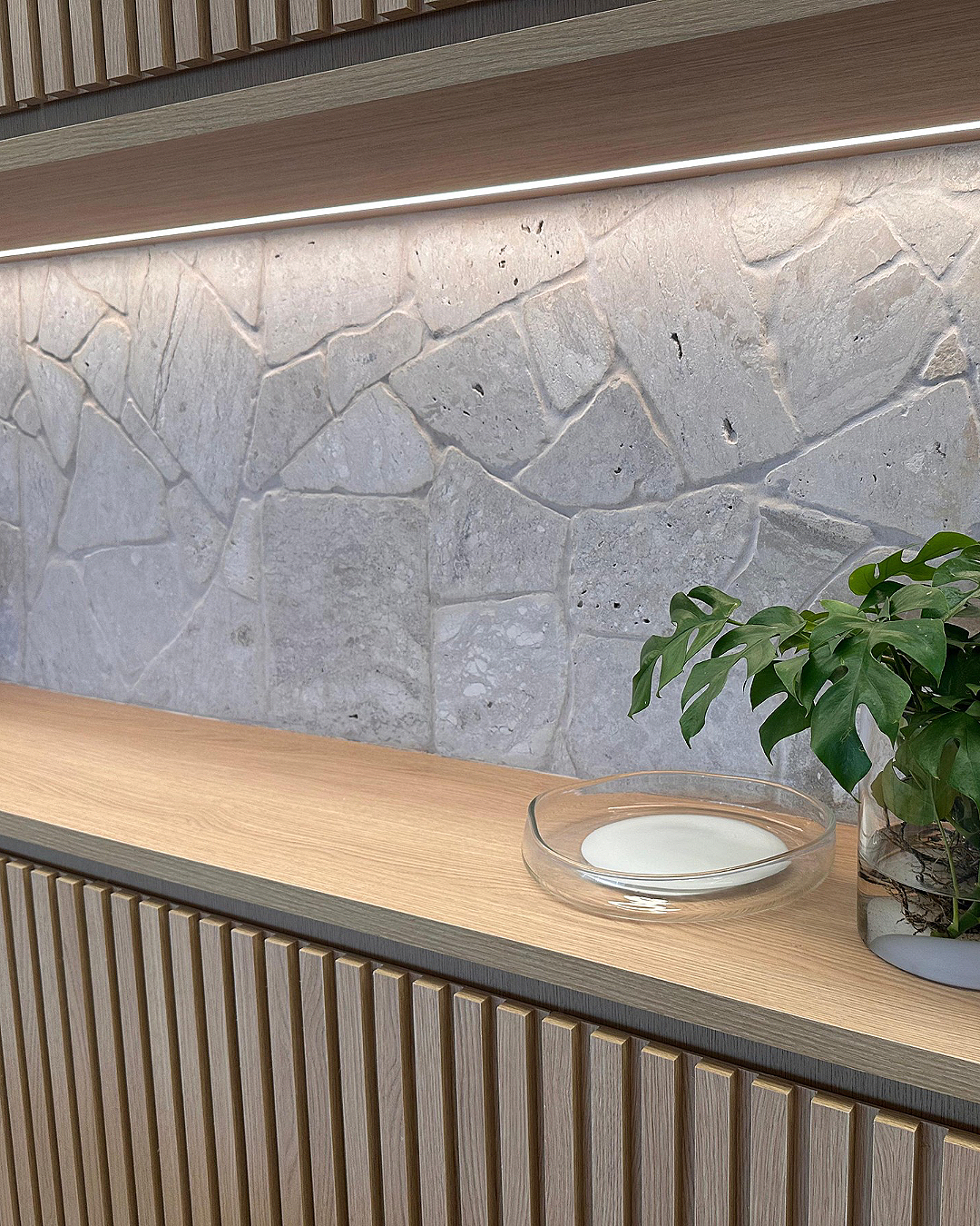 Moledo Line: Organic and irregular pieces handcrafted to create unique surfaces with no repetition in design. The brand offers the Travertino variations, with an authentic and lively aesthetic, and La Roccia, with controlled thickness for projects that seek impact with sophistication.