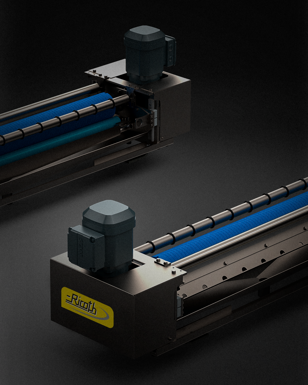 2. Back Print Engobe Applicator: developed to solve a recurring challenge in production lines—the uniform application of engobe on pieces with variations in flatness. The system consists of a flexible roller and a controlled air chamber, which automatically adjust to the irregularities of the piece, ensuring a homogeneous and flawless layer, even on warped pieces.